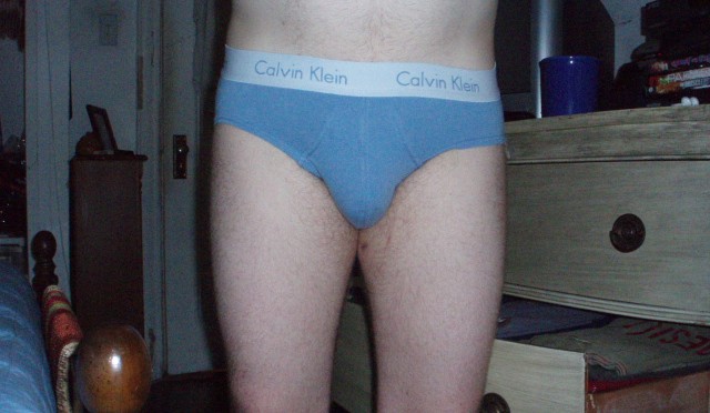 here’s me today in a pair of blue CK 365 blue hip briefs.